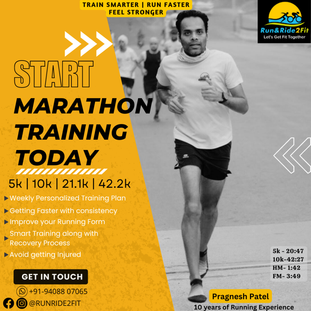 > Founder of Run&Ride2Fit Group in Baroda & providing the Marathon Training to runners.