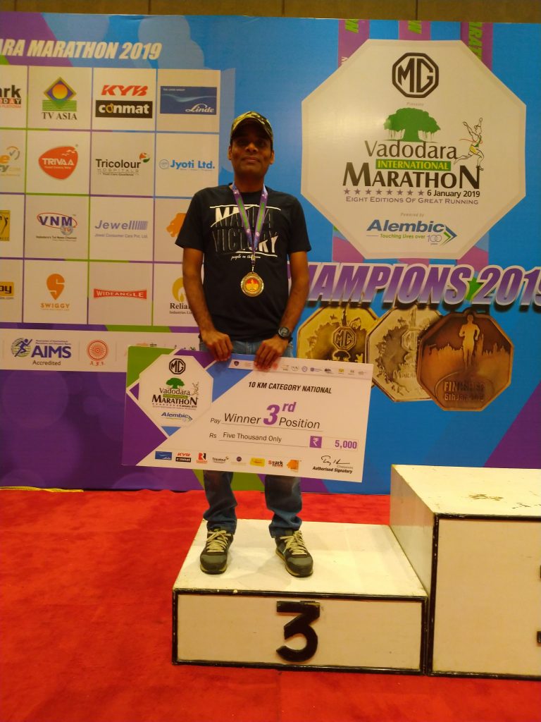 - 2nd Runner Up in 10k Vadodara International Marathon 2019