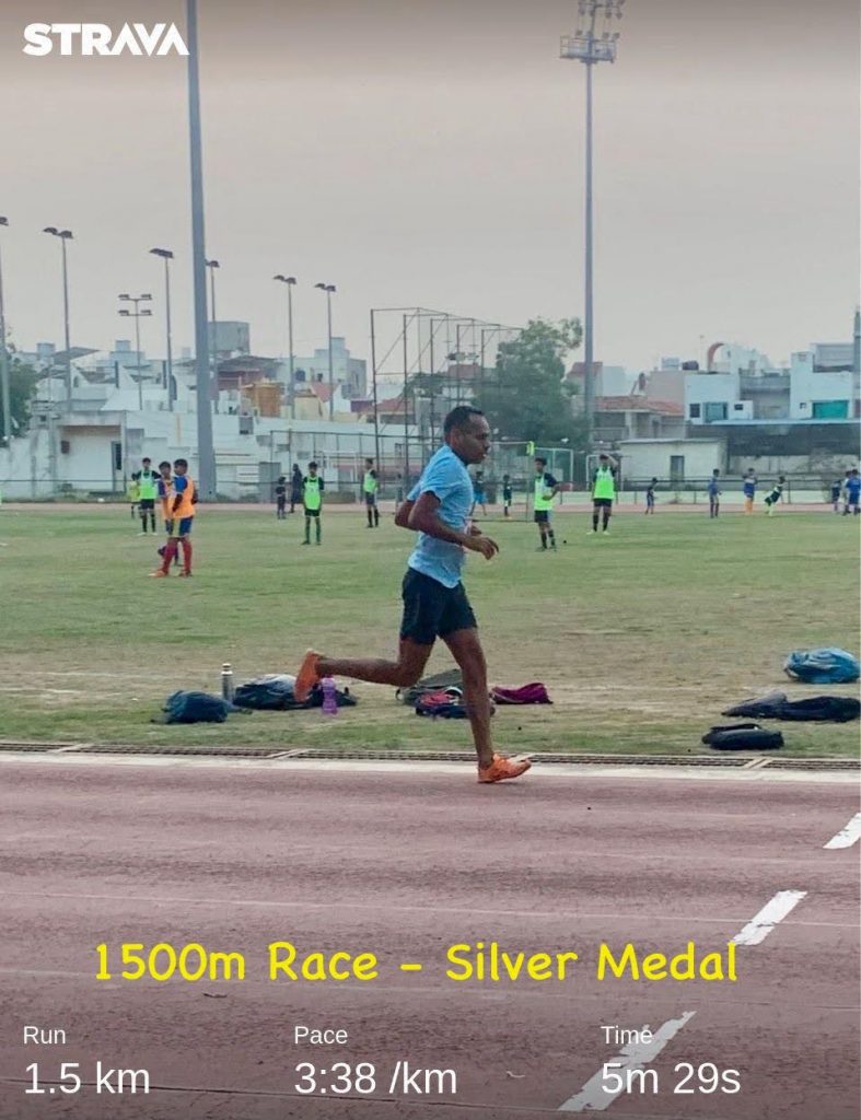 - 1500m – Silver & 400m – Bronze at Masters athletics of Gujarat State 2023